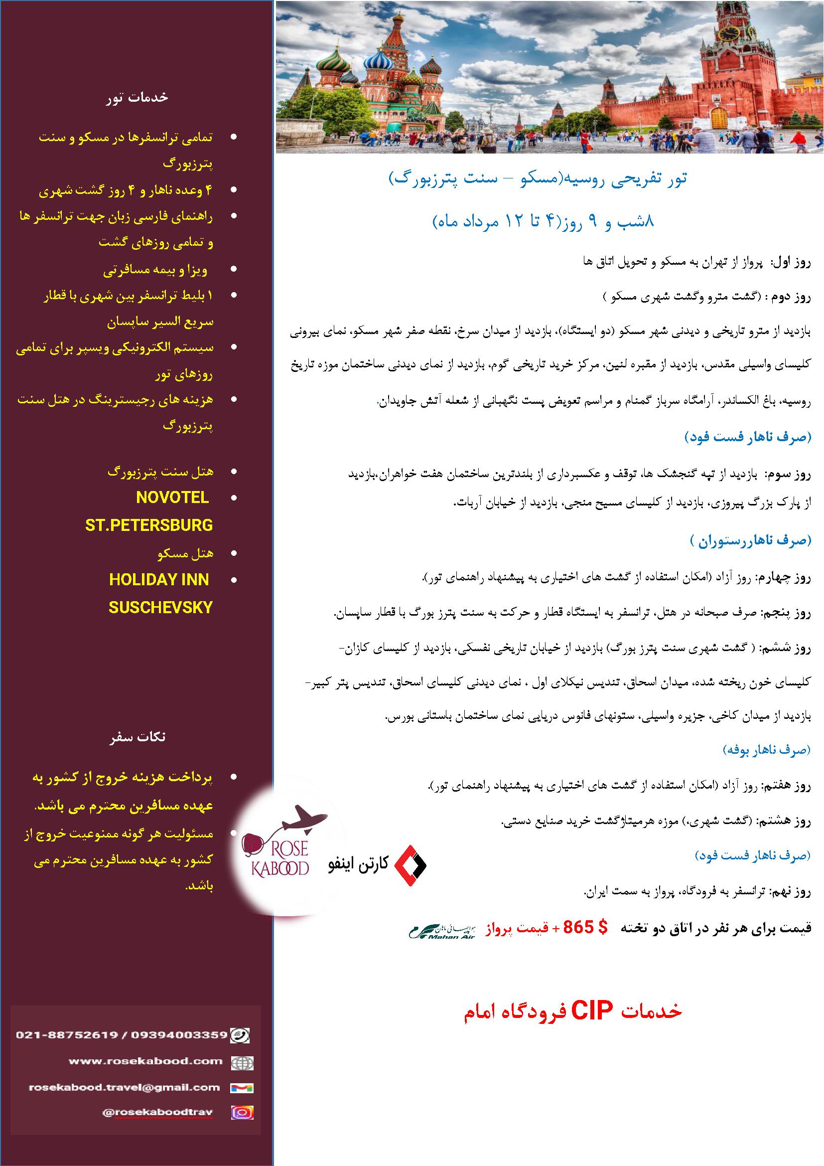 تور تفریحی روسیه(مسکو-سنت پترزبورگ)